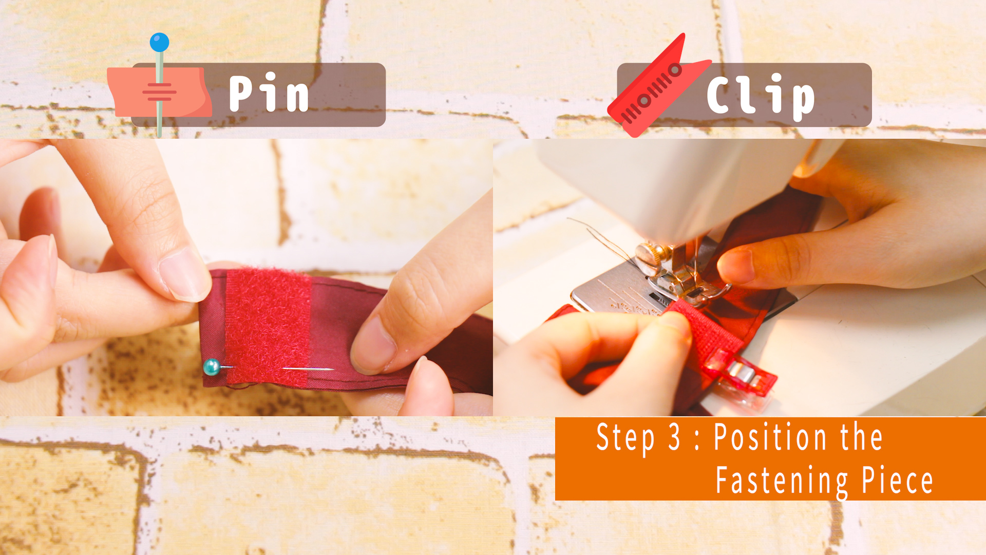 and fixing with pins or clips before sewing.